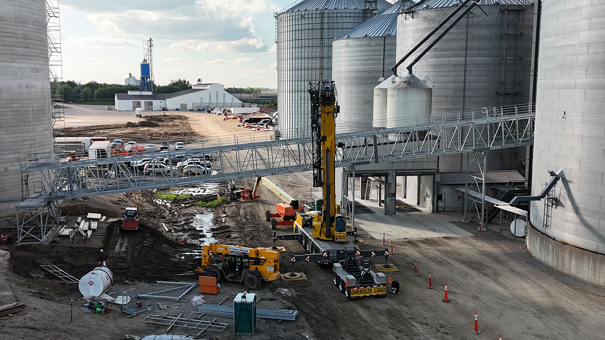 Partnering with SMA LLC, a respected contractor with a long-standing reputation for tackling complex grain system projects, APEX engineered and manufactured a structural solution that quite literally owns the skyline. We were lucky to capture progress during installation, which you can see here.